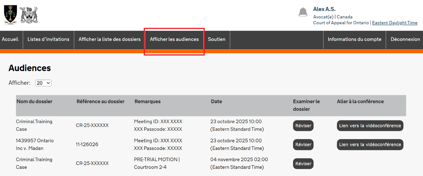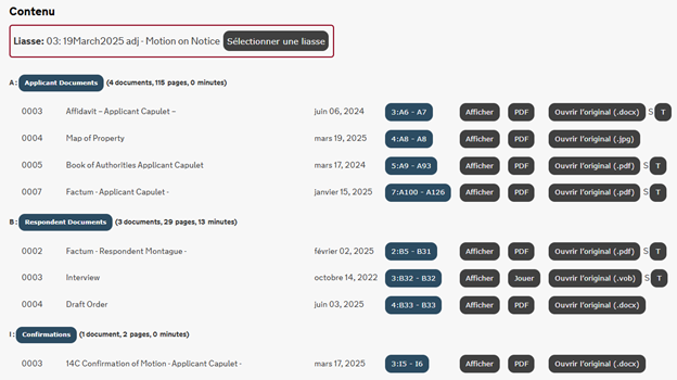 Le fonctionnaire judiciaire n’aura accès qu’aux documents contenus dans Case Center. Il est donc important que les avocats et les parties s’assurent que tous les documents qu’ils ont l’intention de présenter à l’audience sont accessibles via Case Center. Votre affaire peut être ajournée par le fonctionnaire judiciaire qui préside l’audience si vos documents ne sont pas accessibles sur la plateforme.