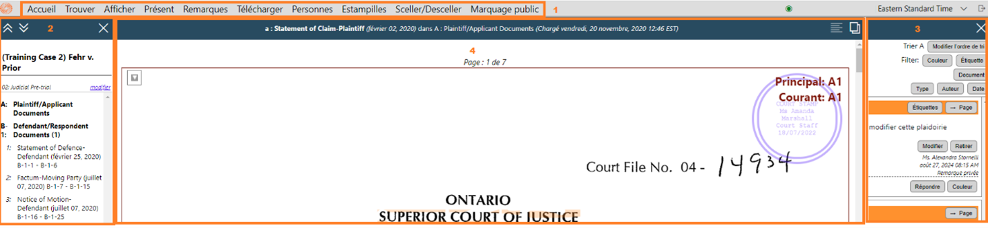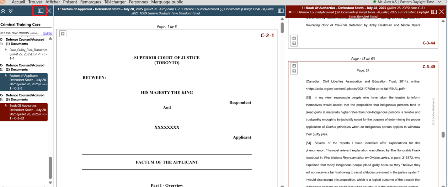 Vous devez annoter vos remarques avec les numéros de page générés par Case Center avant l’audience.