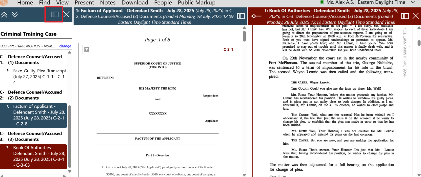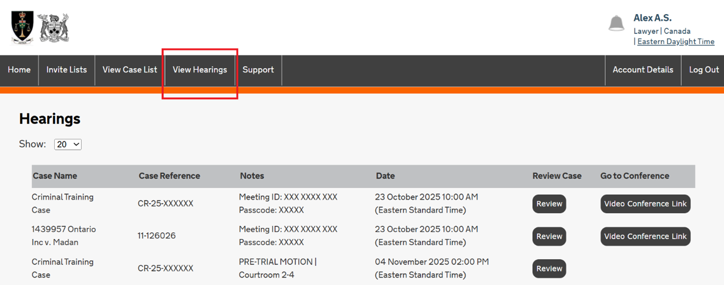 The judicial officer will only have access to the material in Case Center, so it is important that counsel and parties ensure all the material they intend to present at their hearing is accessible through Case Center. Your matter may be adjourned by the presiding judicial officer if your materials are not accessible through Case Center.